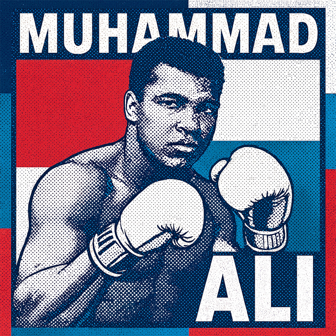 Each design focuses on a different American hero, including figures such as Muhammad Ali, Aretha Franklin, Jackie Robinson, and Emily Dickinson. The challenge was to create a cohesive visual system that could adapt across multiple individuals while maintaining a consistent identity. This was achieved through the use of bold typography, high-contrast imagery, and a refined color palette inspired by American themes.