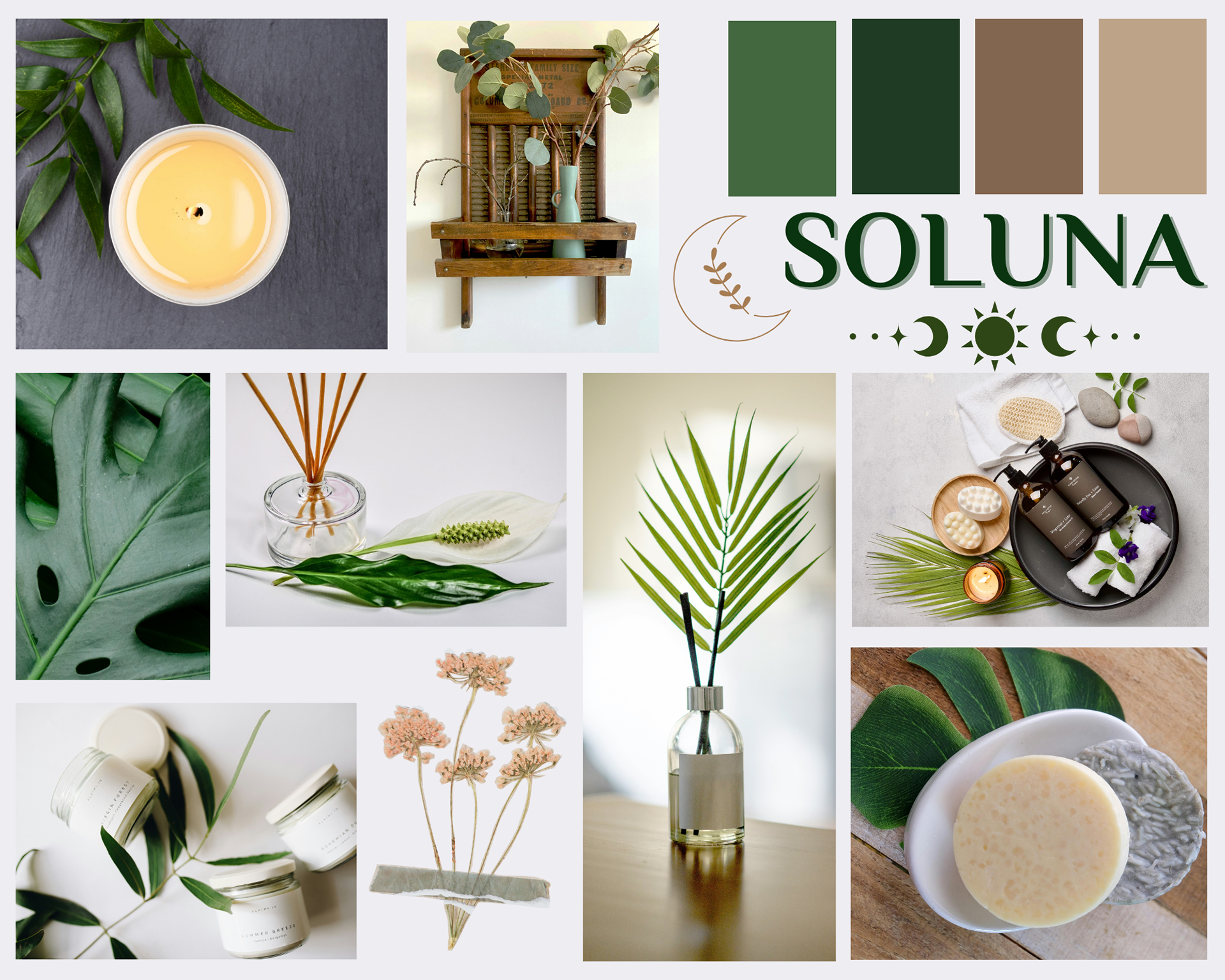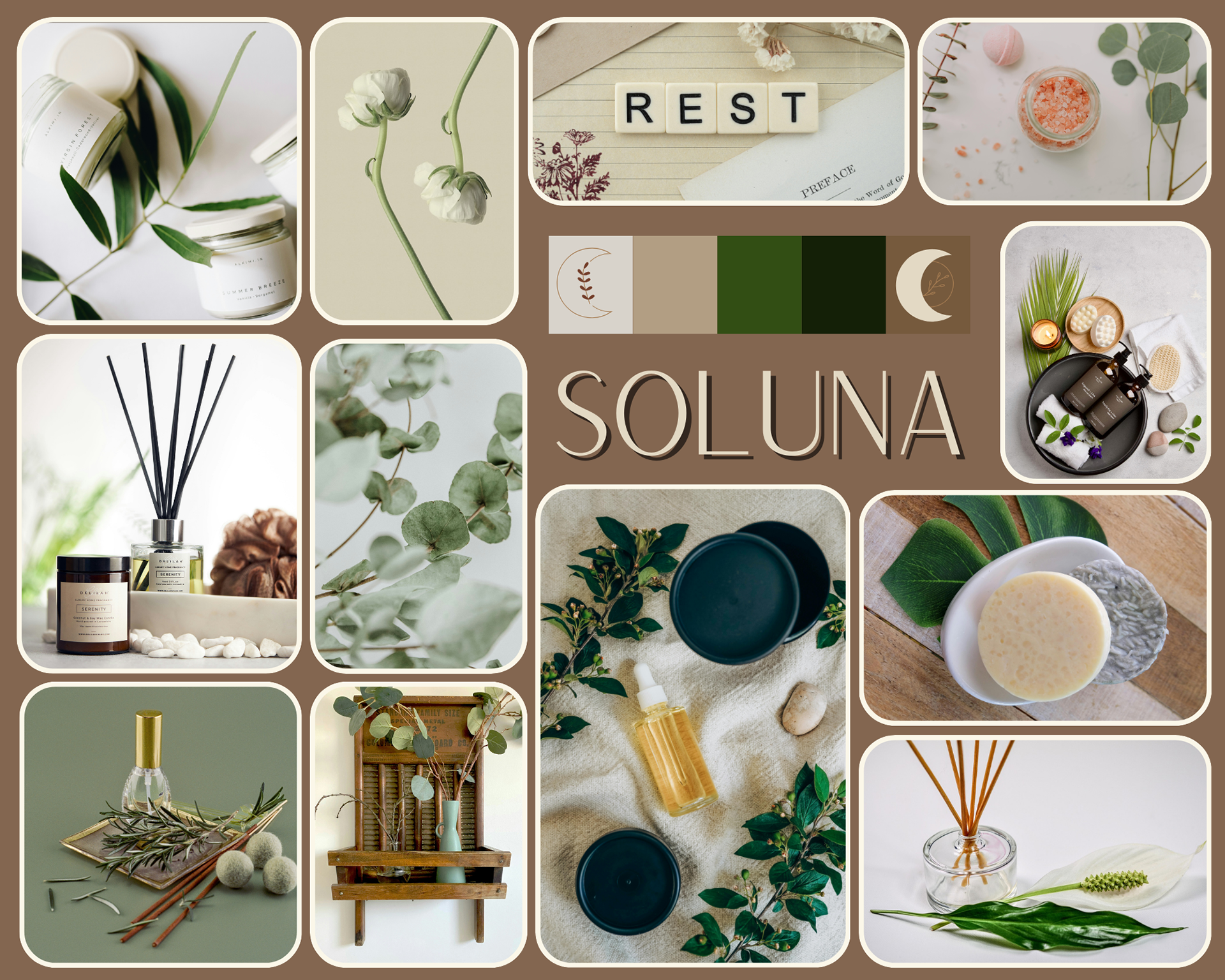 This project focused on developing a complete visual identity for Soluna, a brand centered around aromatherapy and holistic wellness. The objective was to create a cohesive and adaptable brand system that appeals to a younger audience while maintaining a sense of calm, balance, and natural elegance.