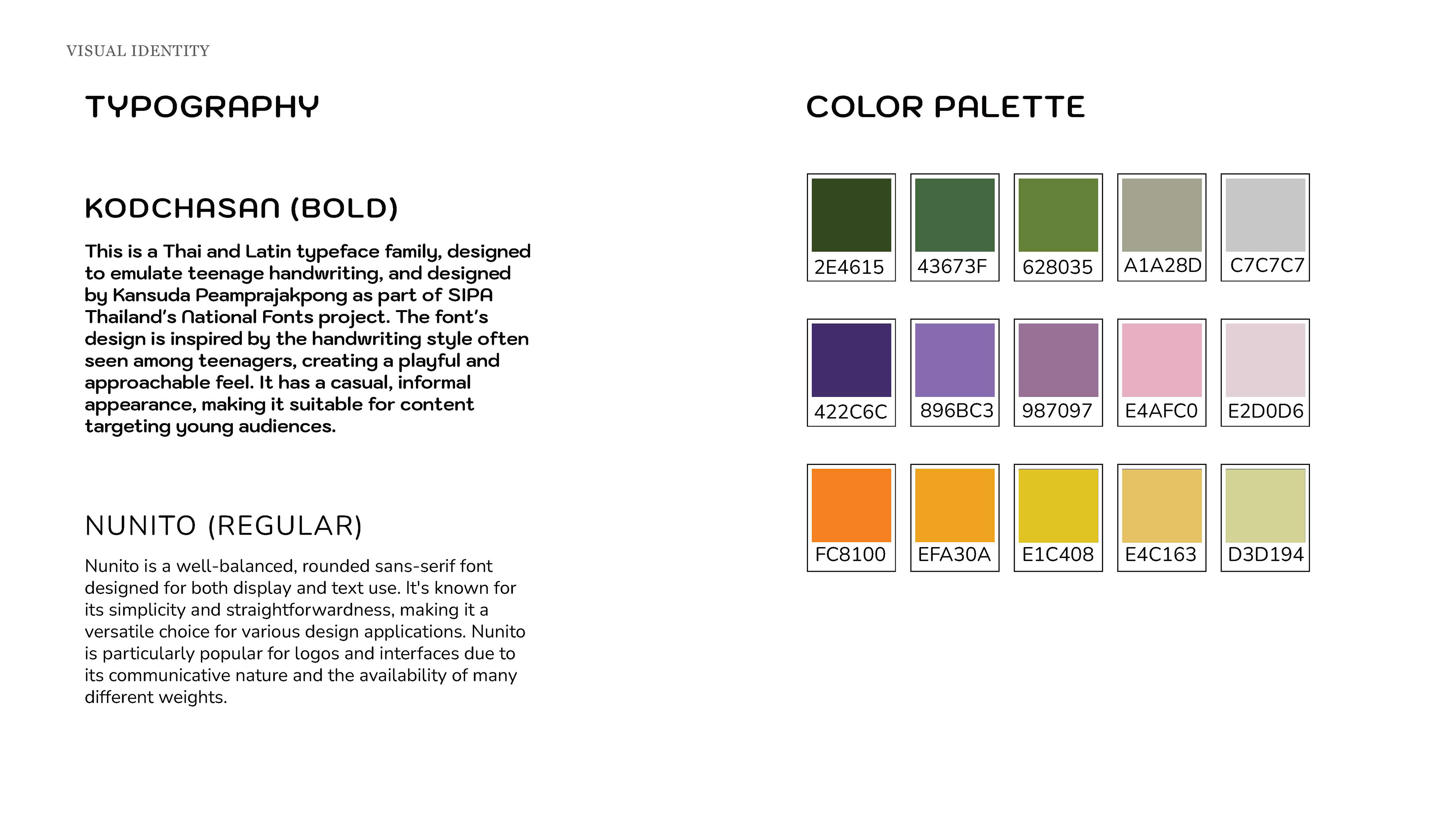 A flexible logo system was developed, including black-and-white and color variations to ensure adaptability across different applications. The color palette incorporates earthy greens, soft neutrals, and subtle accent tones to reinforce the brand’s connection to nature and wellness.
