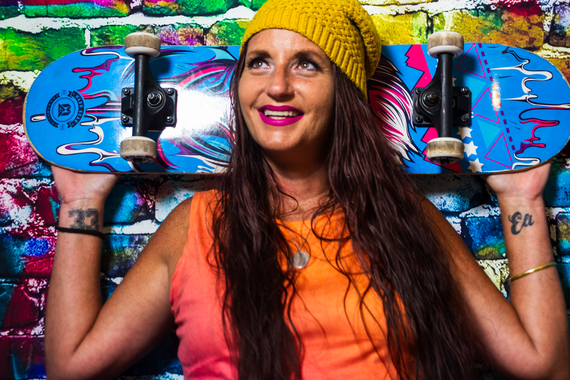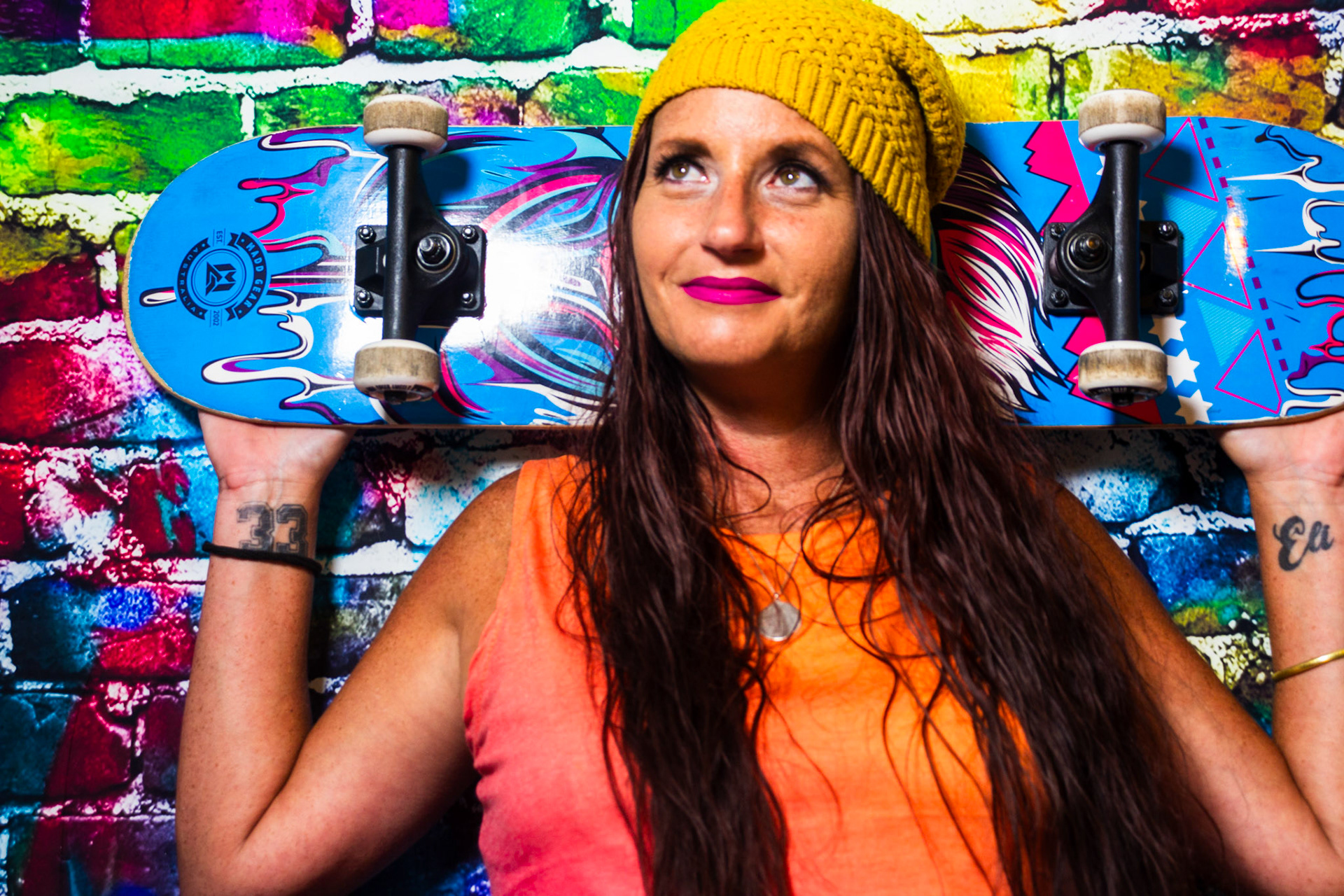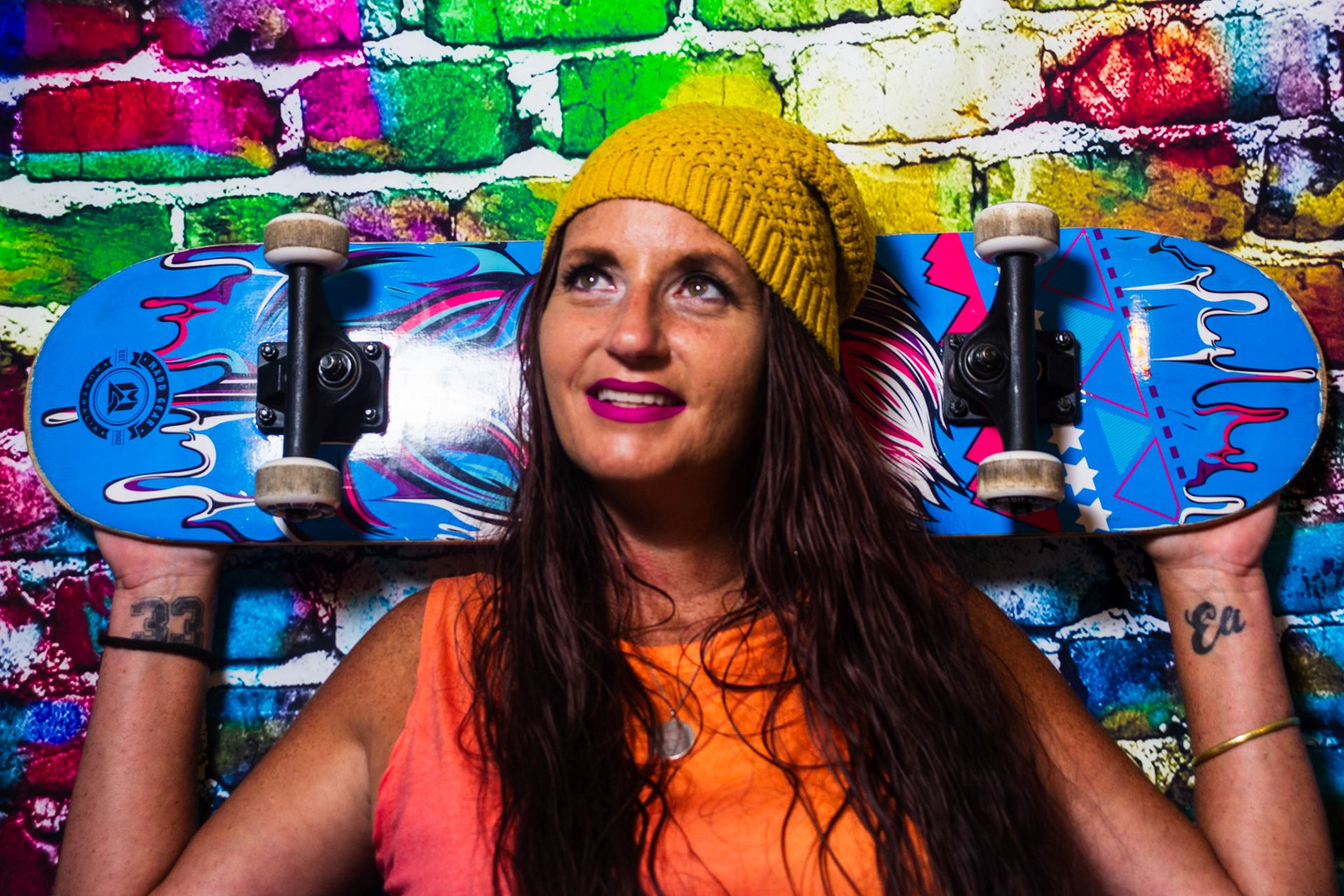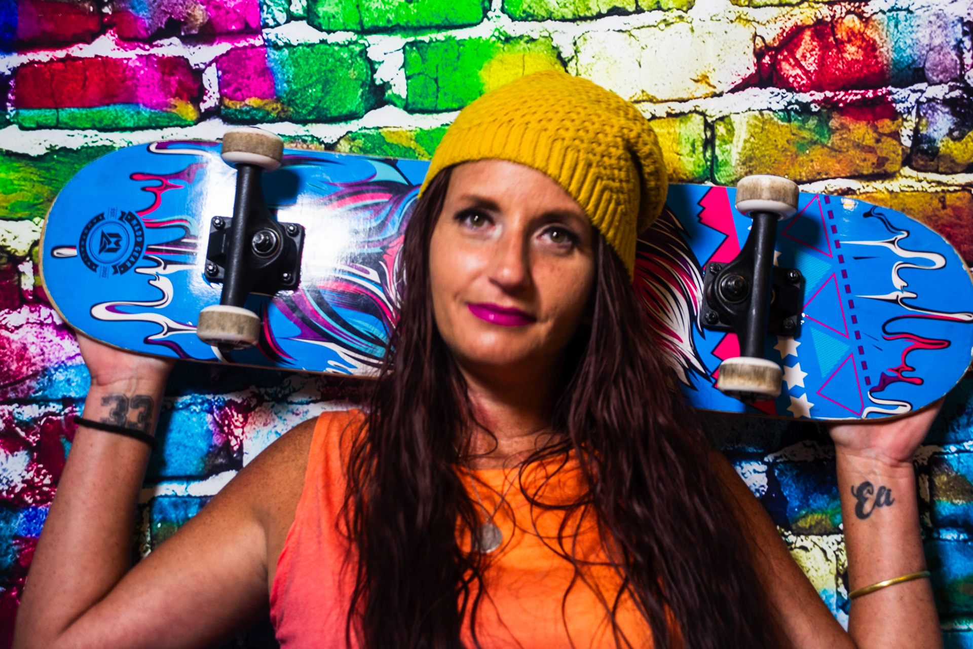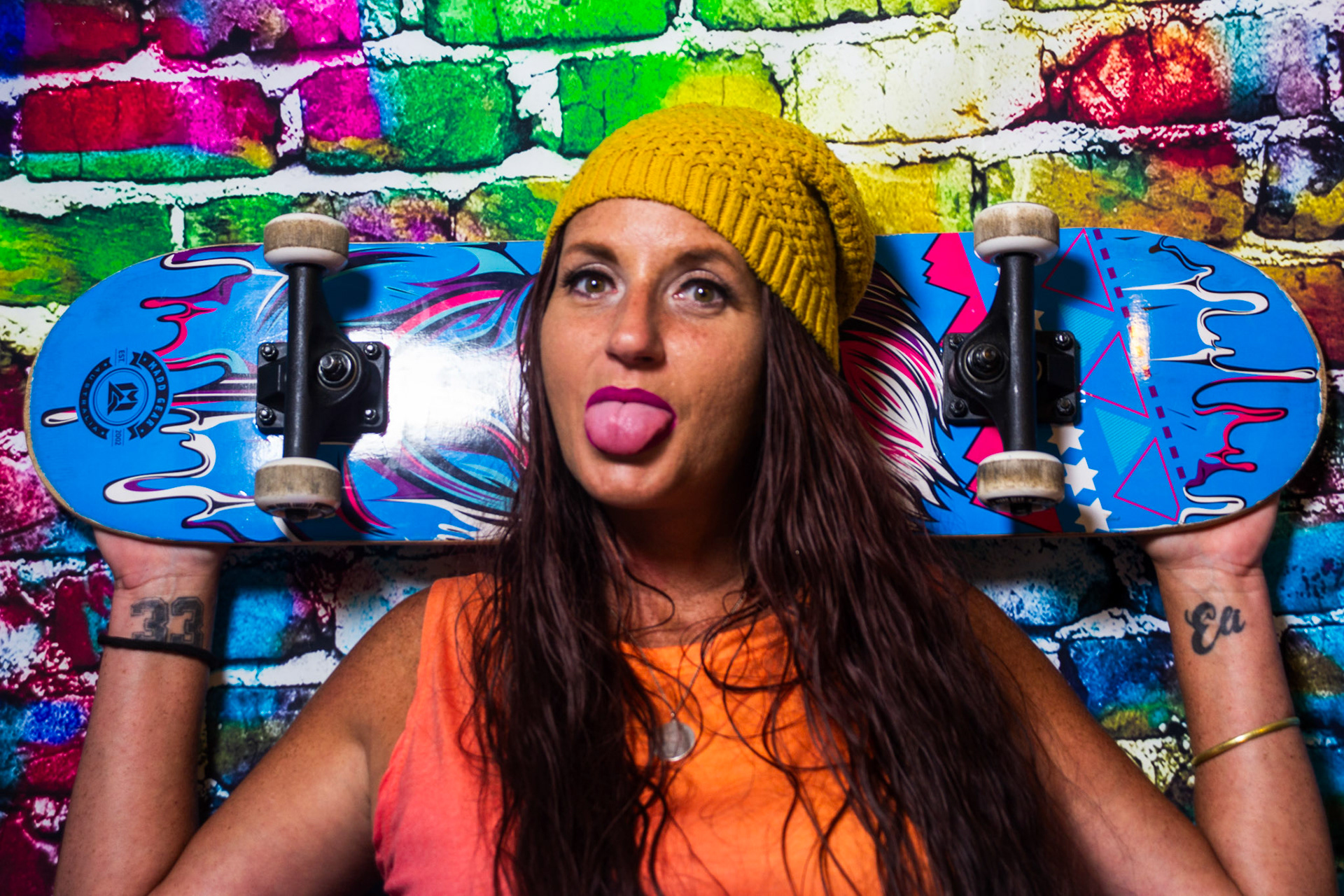 For this mise-en-scène project, I used a colorful graffiti backdrop and styled the scene with props like a skateboard, boom box, and spray paint to create an environment full of energy and self-expression. Since I didn’t have a model, I turned the camera on myself and used a timer to capture these portraits. Some of the images include motion blur — a result of me moving around when the shutter clicked — but I chose to include those moments intentionally. They reflect something real about me: I’m always in motion, constantly creating, and rarely sitting still. This series is a playful, imperfect, and honest snapshot of my personality and the things that inspire me.